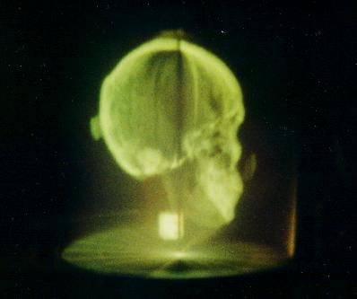 Volume data, such as medical imaging data, can be displayed in volumetric 3D, after proper segmentation and scaling. The resulted images show soft tissues and bones as a semi-transparent volume in V3D. Transparency depends on density of the tissue (image intensity).